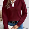Elisabeth™ is de trui die tijdloos design combineert met subtiele details. De diepe V-hals met elegante kanten afwerking geeft een chique uitstraling, terwijl de minimalistische stijl zorgt dat je haar eindeloos kunt combineren – van casual tot classy.